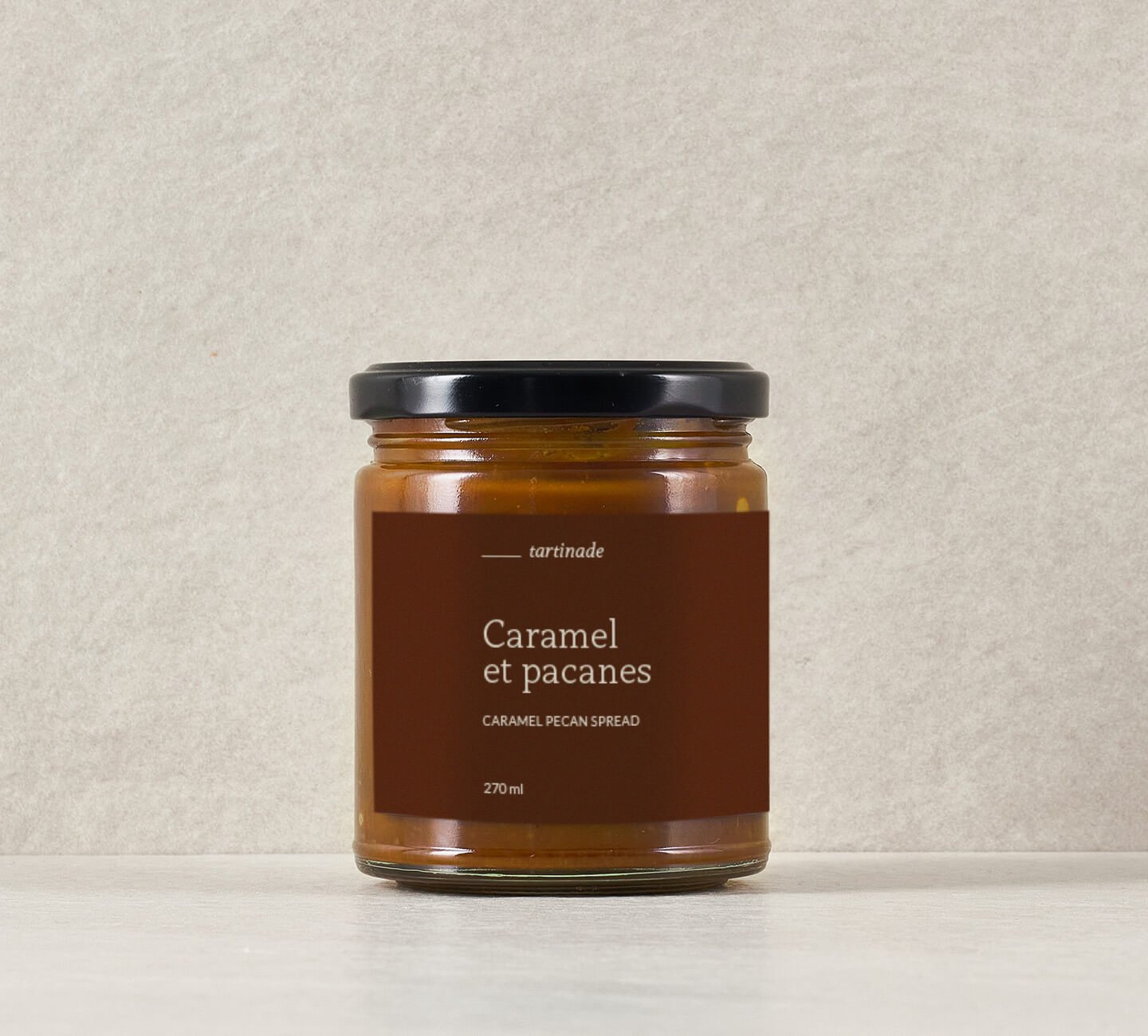 Crème 35 %, sucre, beurre, pacanes, eau, sel de mer.
